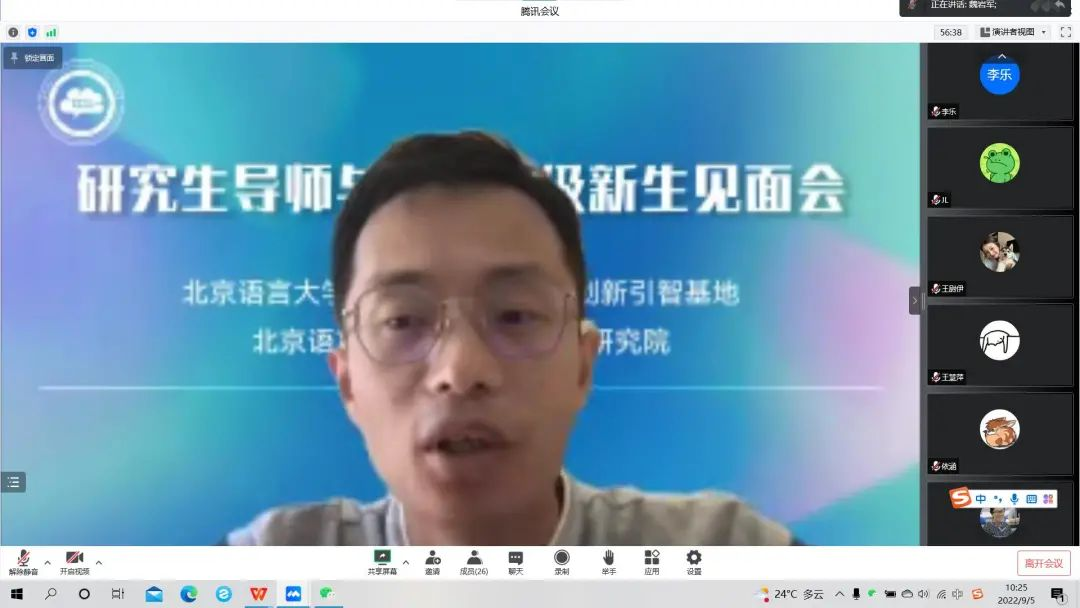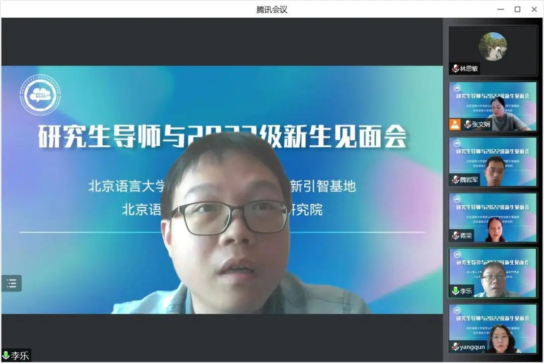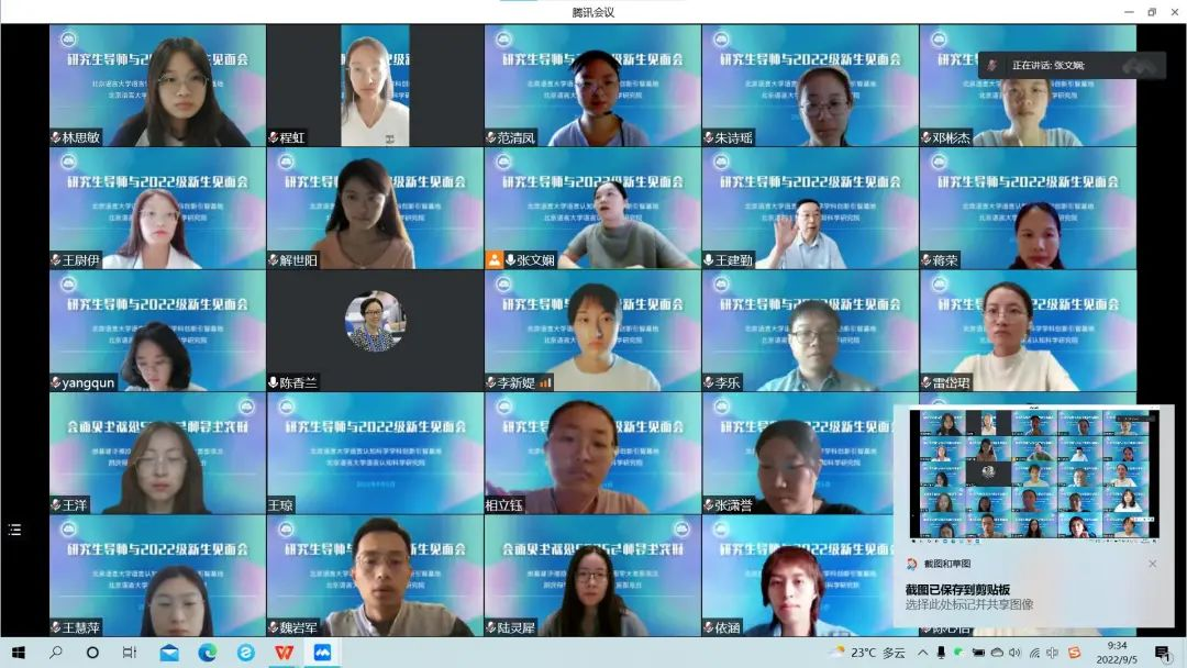 On the morning of September 5, 2022, CCSL held an online meeting between the graduate student supervisors and the new students of the class of 2022, in which all the new students of the class of 2022 and all the teachers of the base participated. This year, two PhD students and 12 master students joined CCSL, and the first batch of PhD and master students in the field of "Language and Cognitive Science" recruited by our university also came to CCSL.