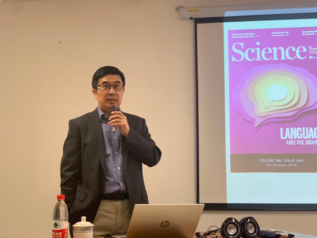 On October 28, 2019, Tan Lihai, the special-term professor of Shenzhen University, was invited by the Center to give an academic lecture. The lecture was entitled “Positioning of Language Center in Human Brain: Protection and Remodeling”. This lecture is the second lecture of the "Language, Cognition and Brain Science Lecture Series" of the Center. Professor Wang Jianqin, the director of the center, presided over the lecture. To meet the requirements of scholars outside Beijing, this lecture was also broadcast live on the Internet. More than 100 teachers and students both inside and outside the school listened to it on the spot or online.