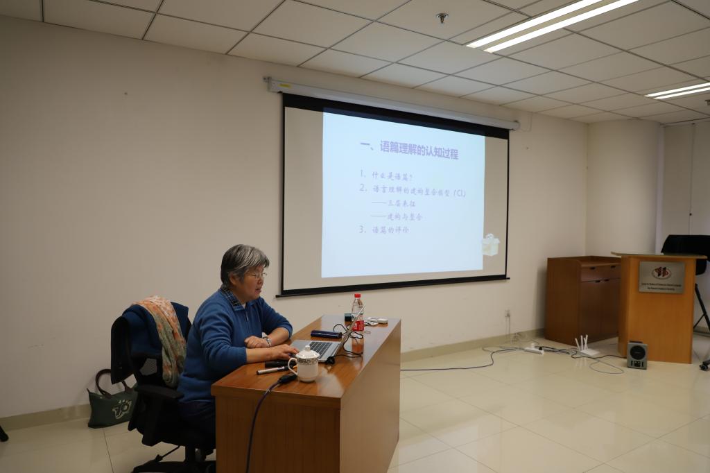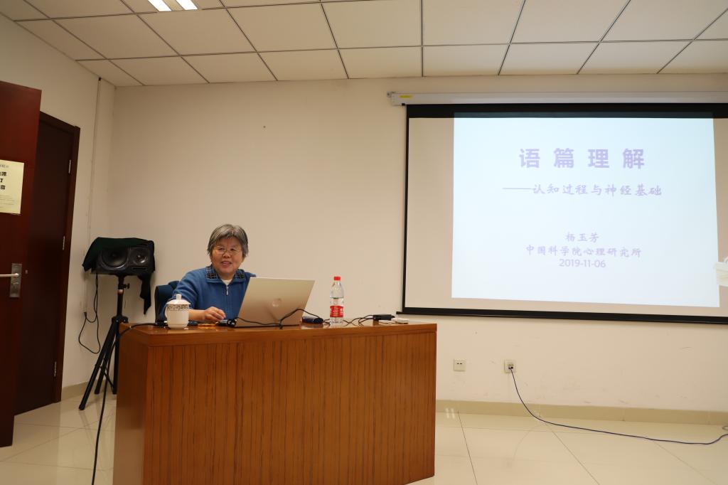 On November 6, 2019, Professor Yang Yufang from the Institute of Psychology of the Chinese Academy of Sciences was invited to make an academic report entitled "Discourse Comprehension - Cognitive Process and Neural Basis". This lecture is the fourth one of the "Language, Cognition and Brain Science Lecture Series", presided by the center researcher, Dr. Qun Yang and listened by nearly 50 teachers and students from both inside and outside the university.