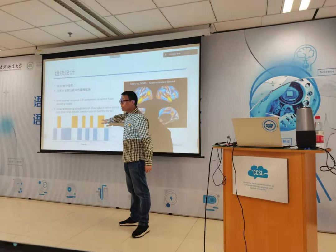 In order to help teachers and students master advanced language experimental techniques, CCSL held a workshop on "Language Cognitive Science Workshop" in the afternoon of October 28, 2021, which was presented by Dr. Le Li, a full-time researcher of the CCSL. The workshop was held in the afternoon of October 28, 2021, and the topic was "Basic concepts and research process of fMRI".