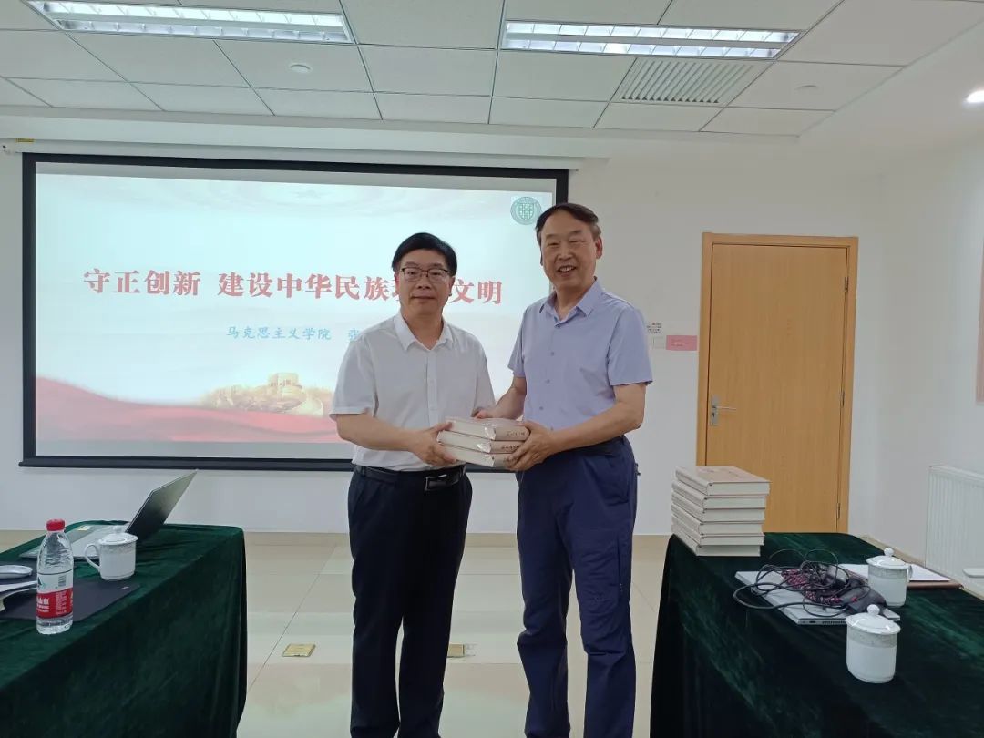 Following the conclusion of the party lecture, Professor Zhang Jiacai generously presented a complete set of "Collected Works of Liu Wenying" (nine volumes) to the students and faculty at the base.